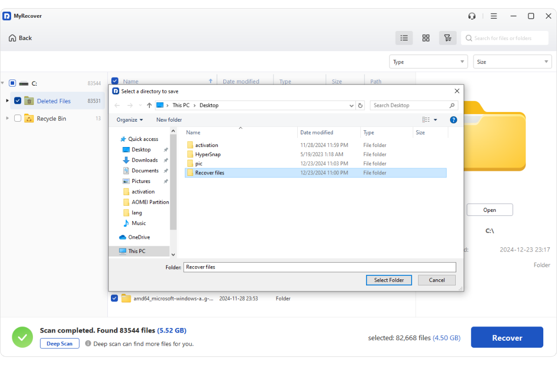 從清空的資源回收筒恢復資料。MyRecover是一款強大的Windows資料復原工具,可輕鬆還原永久刪除的檔案。