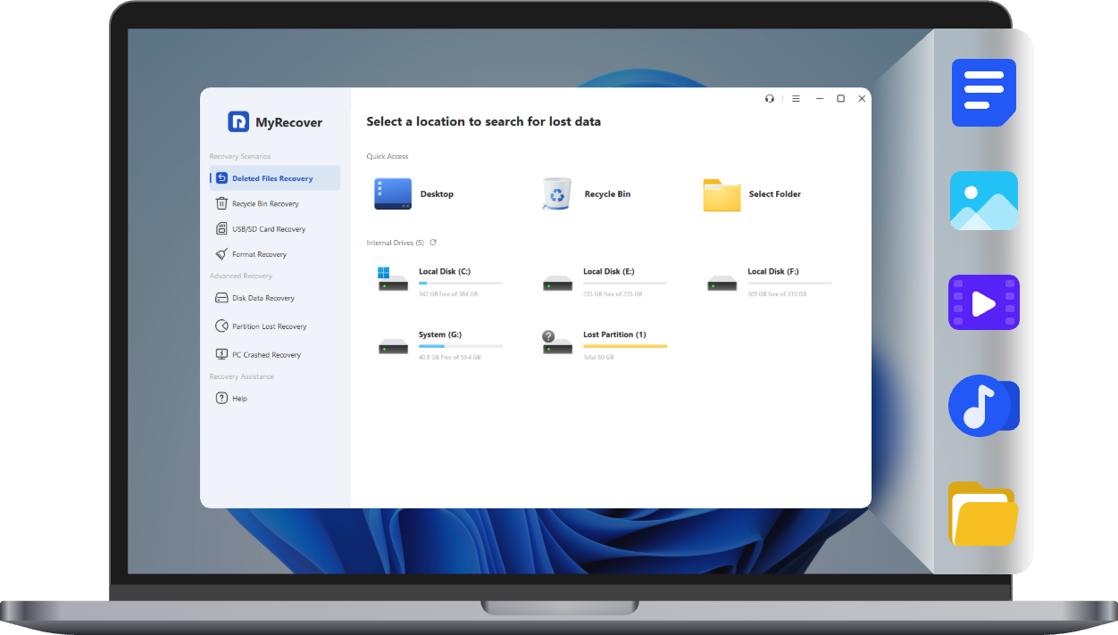 當您遇到資料遺失問題時,MyRecover是您的最佳選擇。它能為您從Windows 11/10/8/7的HDD/SSD中以高成功率復原您的寶貴資料。